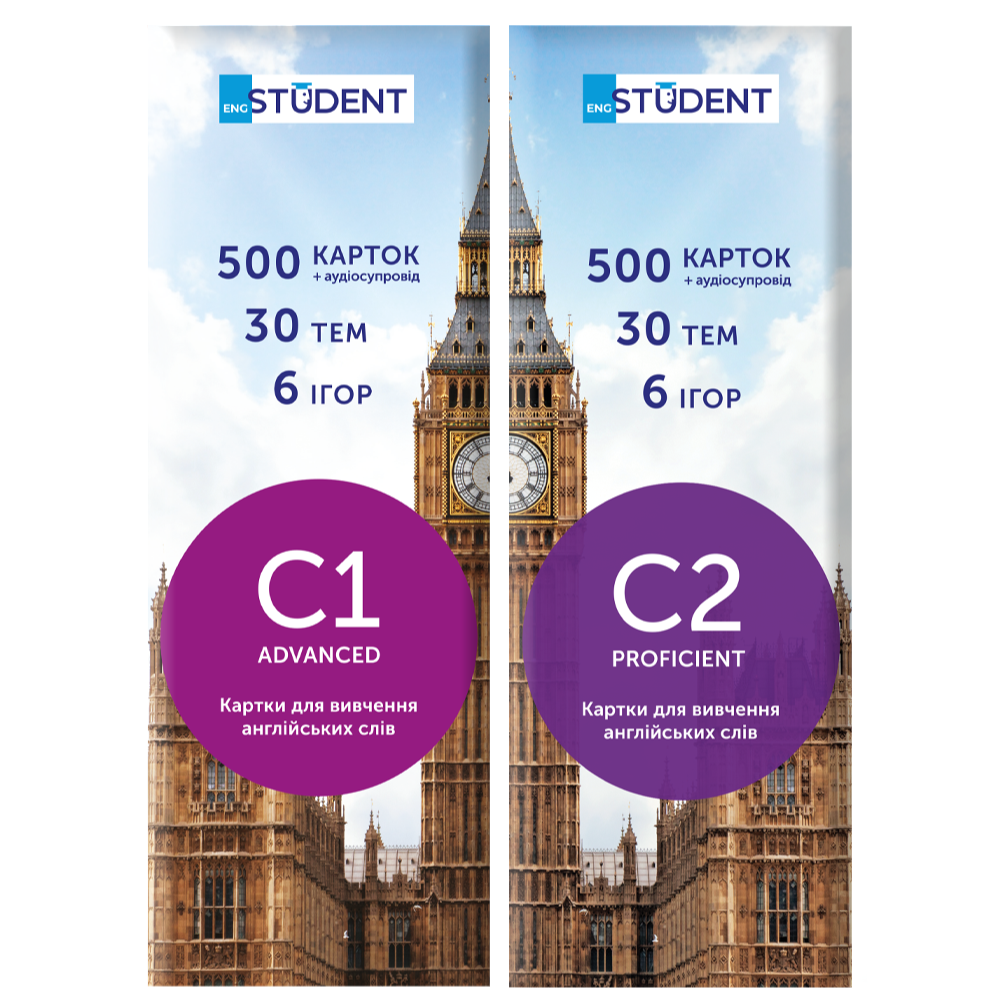 Набір «Незадоволений англійською» — картки англійських слів для тих, хто мріє про ідеальну англійську. А також тим, хто хоче розмовляти, як native speaker. Після вивчення цього набору ти зможеш передавати найтонші відтінки значень, розуміти гумор та фрази із підтекстами, які вживають носії мови. Набір для рівнів С1 та С2 — це 1711 англійських слів та 1134 приклади.